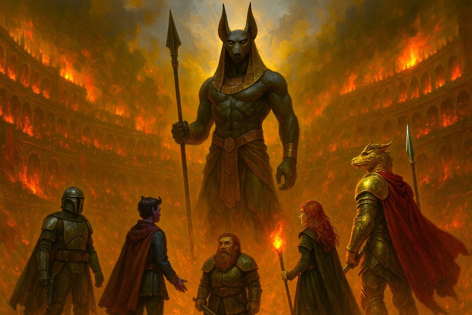 “Nečisti stvore”, započeh ja iako je u pitanju božanstvo pa teško baš da je nečist ali žar borbe je i hajde malo da sjašete svi, video bih vas da li možete da razmišljate kad nekoliko metara visok polu čovek, polu šakal a sto posto bog, stoji isped vas u sred arene u prvom krugu pakla i sprema se da uradi ko zna šta…