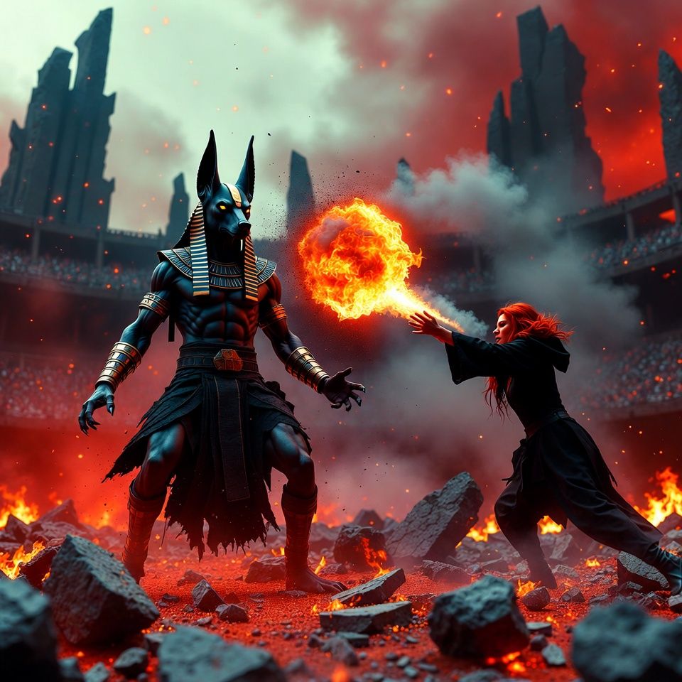 Thorsten nastavi da mlatara sekirom i konačno ga pogodi svom silinom. Nakon Arijine druge vatrene loptice, Anubis podiže ruke i mrtva tišina se spusti na nas.