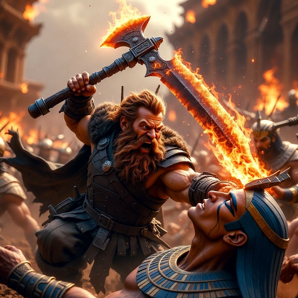 Thorsten sekiramačem obara Ozirisa na kolena. Slika ne prikazuje Manda jer ne zaslužuje...