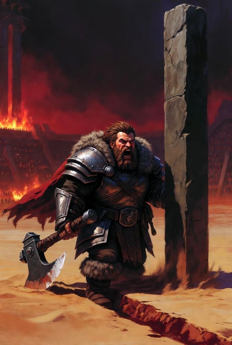 Kad se prašina od slomljenog stuba slegla, Thorsten ustade, otrese kamenčiće iz kose i brade, i laganim hodom, kao da se nalazi ispred svinjca iz kog je potekao svemujebemdamujebem a ne u areni u prvom krugu pakla, krenu ka drugom stubu.