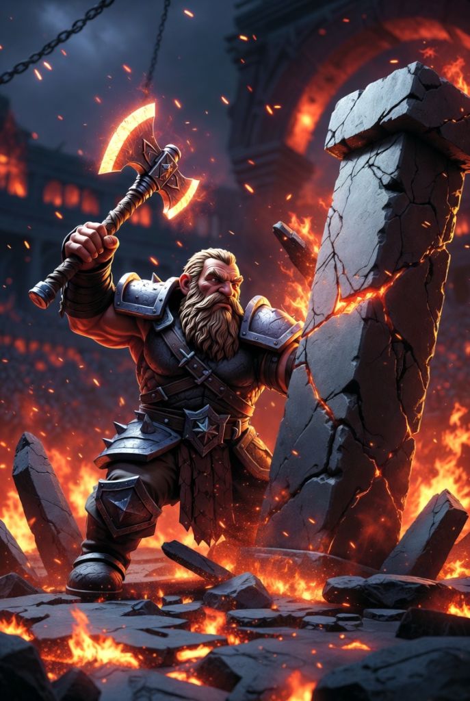 Zakopao te stub dabogda, i tebe i svakog patuljka! Šta si se navrzao na to?! Mi ovde se međusobno poubijasmo, ne stižu bogovi da nas pogode koliko se međusobno mlatimo, a ti biješ sekirom u kameni stub, koji još i leči.